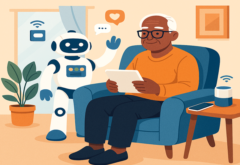 - Monitoramento Domiciliar Inteligente: Sensores discretos instalados na casa que monitoram a rotina. A IA aprende o padrão de sono e atividade do idoso e notifica cuidadores ou familiares em caso de anomalias (como falta de movimento por longos períodos ou o uso excessivo do banheiro durante a noite).