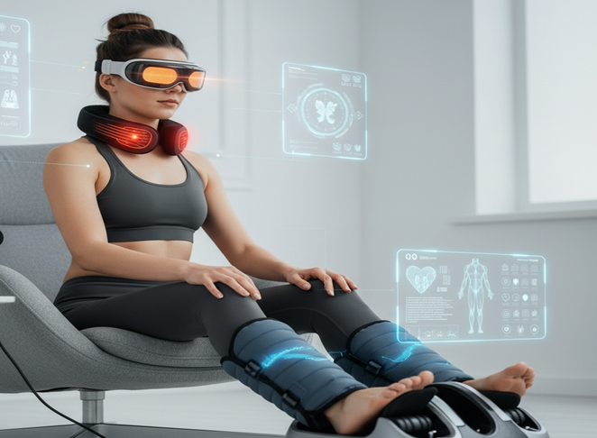 - Vantagens: A combinação de compressão (semelhante a uma massagem de drenagem linfática), rolamento e aquecimento melhora a circulação, reduz o inchaço e proporciona um relaxamento profundo.